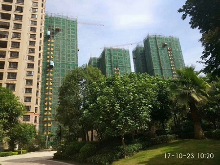 施工中的“綠桂”牌瓷磚膠工程項目,選擇綠桂,工程無憂!
