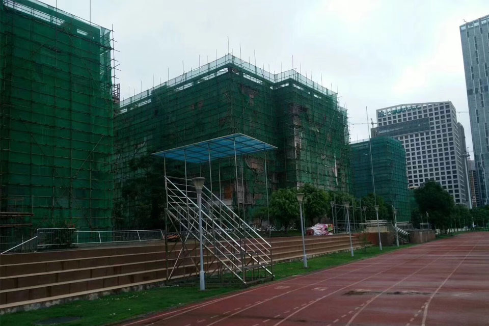 南寧市第二十六中學(xué)五象校區(qū)外墻貼磚工藝使用綠桂瓷磚粘貼膠